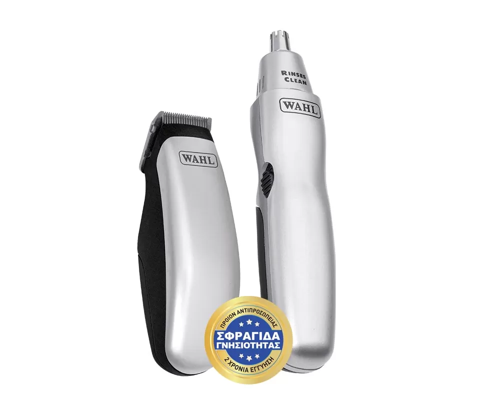 Σετ τρίμερ μπαταρίας, τρίμερ μύτης & αυτιών & αξεσουάρ ταξιδιού από την WAHL! Το τρίμερ μπαταρίας είναι ιδανικό για την περιποίηση της περιοχής του προσώπου και του αυχένα, αλλά και για το τριμάρισμα των φαβορίτων, της γενειάδας, και του μουστακιού. Παράλληλα, το τρίμερ μύτης & αυτιών αφαιρεί τις τρίχες χωρίς να τις τραβάει, για άνετη, γρήγορη, και ευχάριστη προσωπική φροντίδα. Χάρη στο compact μέγεθος τους, οι συσκευές χρησιμοποιούνται και μεταφέρονται άνετα, ακόμη και στο αεροπλάνο. Τέλος, τα αξεσουάρ προσωπικής περιποίησης που διαθέτει το σετ, διευκολύνουν την διαδικασία της προσωπικής περιποίησης.