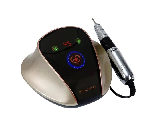 Ο τροχός για νύχια Sculpto Nails της Beautifly διαθέτει αποδοτικό μοτέρ με ρυθμιζόμενη ταχύτητα περιστροφής έως 45.000 rpm, εξασφαλίζοντας αθόρυβη και αποδοτική λειτουργία. Με δυνατότητα επιλογής κατεύθυνσης περιστροφής (δεξιόστροφα ή αριστερόστροφα), ψηφιακή LED οθόνη αφής για την ένδειξη της ταχύτητας, πεντάλ ποδιού που χαρίζει πλήρη ελευθερία κινήσεων, καθώς και 6 υψηλής ποιότητας φρεζάκια από ατσάλι για διάφορες χρήσεις (pedicure, σχηματισμό νυχιών, κ.λπ.), η συσκευή παρέχει εξαιρετική απόδοση και ευκολία στη χρήση. Ο εργονομικός του σχεδιασμός και το σύστημα Twist Lock, το καθιστούν ιδανικό για επαγγελματική και προσωπική χρήση.