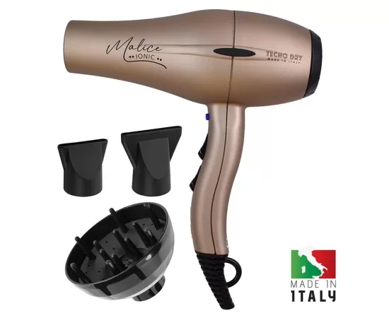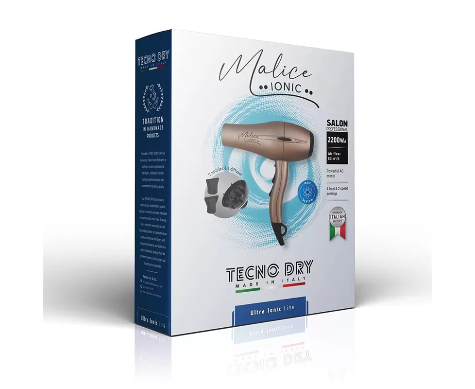 Εργονομικό, επαγγελματικό σεσουάρ μαλλιών 2200 W με ιονιστή, από την Tecnodry! Είναι ιδανικό για καθημερινή, εντατική χρήση στο κομμωτήριο και όχι μόνο, αφού εγγυάται αστραπιαίο, ομοιόμορφο στέγνωμα & styling. Διαθέτει επαγγελματικό AC ιταλικό μοτέρ μακράς διάρκειας (έως και 3000 ώρες) με πανίσχυρη ροή αέρα 83 m³/h, ιονιστή για πλήρη εξουδετέρωση του φριζαρίσματος, αποσπώμενο φίλτρο για εύκολο καθαρισμό και αντιολισθητικές πλαϊνές βάσεις για σταθερή τοποθέτηση. Έτσι, υπόσχεται ολοκληρωμένη φροντίδα κατά το styling, ενώ η εργονομική του σχεδίαση επιτρέπει την εύκολη χρήση του τόσο από δεξιόχειρες όσο και από αριστερόχειρες! Συνοδεύεται από 2 επαγγελματικά στόμια και 1 φυσούνα.