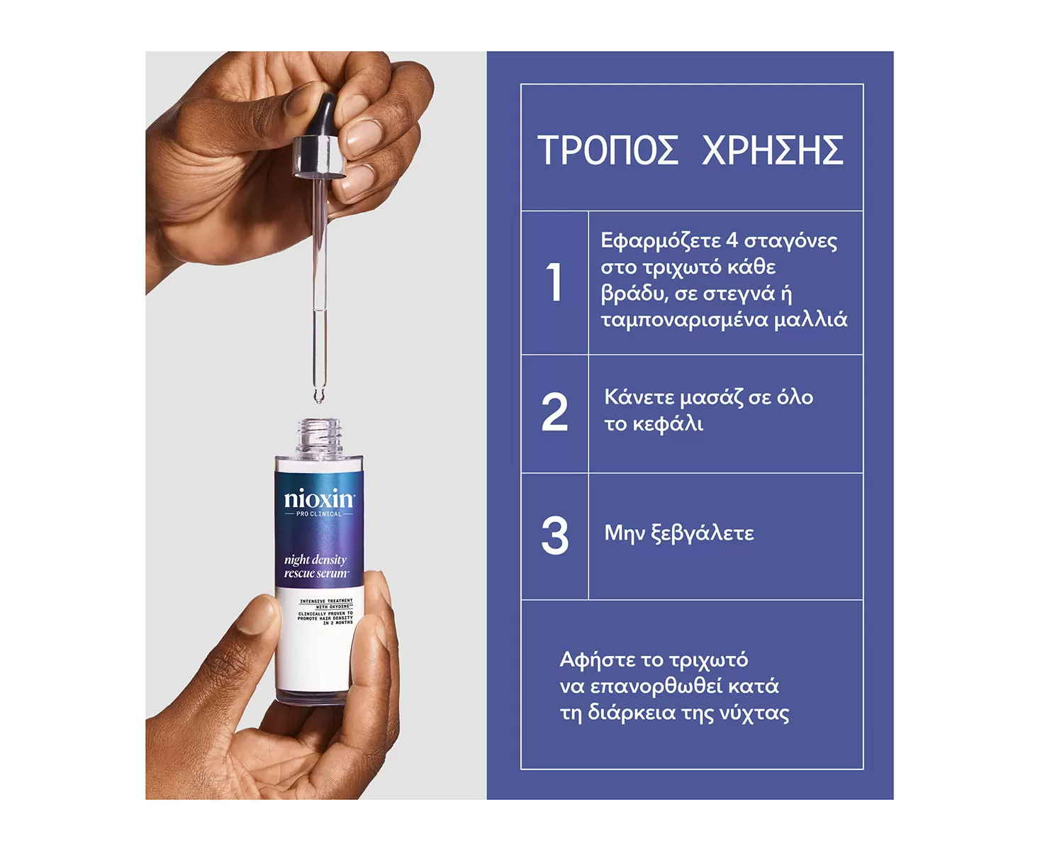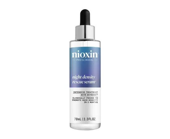 Η Nioxin Night Density Rescue 70ml αποτελεί μία θεραπεία νυκτός χωρίς ξέβγαλμα που αυξάνει αποδεδειγμένα την πυκνότητα των μαλλιών, μειώνοντας την τριχόπτωση* που σχετίζεται με τις βλάβες από την οξείδωση του τριχωτού της κεφαλής.