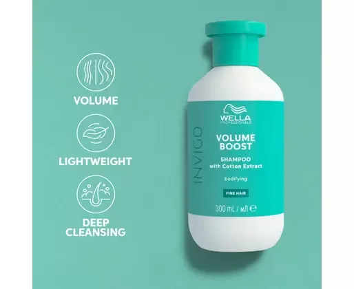 Το σαμπουάν Wella Profesionnals Invigo Volume Boost Bodifying Shampoo με εκχύλισμα βαμβακιού καθαρίζει βαθιά και αφαιρεί τους ρύπους από τα μαλλιά, ενώ παράλληλα χαρίζει ανάλαφρο όγκο. Οι ελαφριές συνθέσεις χαρίζουν ευκολία χειρισμού και λάμψη, χωρίς να βαραίνουν τα μαλλιά.